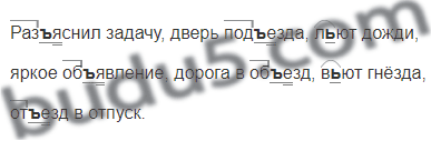 Раз_яснил задачу, дверь под_езда, л_ют дожди, яркое об_явление, дорога в об_езд, в_ют гнёзда, от_езд в отпуск.
