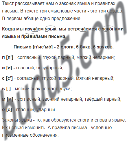 Прочитай текст. О чём он? Выдели в тексте три смысловые части. Покажи границы абзацев простым карандашом. Сколько предложений в первом абзаце? Спиши первый абзац. Подчеркни знакомые орфограммы.