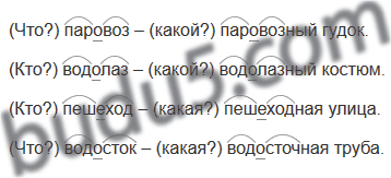 Образец записи: (что?) паровоз – (какой?) паровозный гудок.
