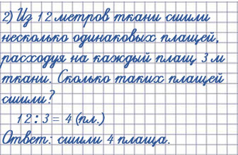 Из 12 м ткани сшили несколько одинаковых плащей, расходуя на каждый плащ 3 м ткани. Сколько плащей сшили?