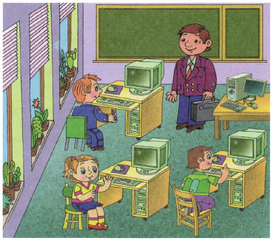 Словосочетания для выбора: новые компьютеры, молодой учитель, учить работать на компьютере, интересные задания.