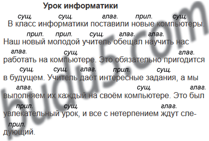 Рассмотрите рисунок. Составьте по нему рассказ, озаглавьте его. Можете использовать словосочетания для выбора. Запишите получившийся текст. Обозначьте части речи.