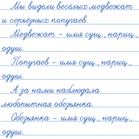 Рассмотрите рисунок. Составьте по нему несколько предложений. Расскажите обо всех именах существительных в предложениях: собственные они или нарицательные, одушевлённые или неодушевлённые. Напишите об именах существительных по образцу.