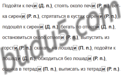 Подойти к печ.., стоять около печ.., ветка сирен.., спрятаться в кустах сирен.., подошёл к сирен.., бегать по отмел.., остановиться около отмел.., выпустить из горст.., скакать на лошад.., подойти к ло-шад.., обходиться без лошад.., оценка в тетрад.., выписать из тетрад.. .