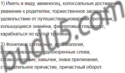 2) Фонетика, согласные, фразеология, словообразование, однокоренные слова, словосочетание, кавычки, знаки препинания, страдательное причастие, причастный оборот.
