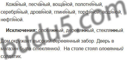 Запишите десять имён прилагательных, образованных от существительных с помощью суффикса -ан- (-ян-). Какие слова-исключения из этого правила существуют? Составьте и запишите предложения с ними.