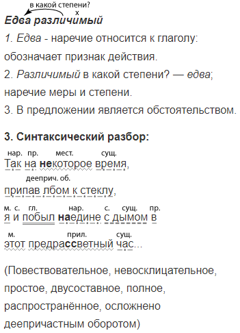 2. Различимый в какой степени? — едва; наречие меры и степени.