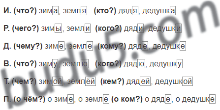 1. Просклоняйте письменно существительные зима, земля, дядя, дедушка. Сверяйте с образцами склонения, данными в упр. 19.