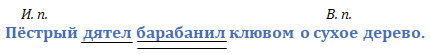 Пёстрый дятел, барабанил клювом, барабанил о дерево, о сухое дерево.