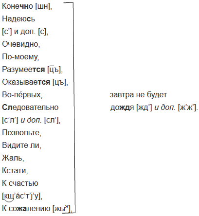 3. Произнесите вслух вводные слова, не допуская ошибок в их произношении.