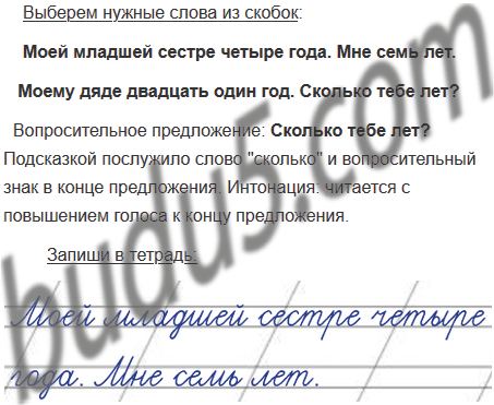 Выбери из слов в скобках нужные. Запиши первые два предложения. Найди вопросительное предложение. Что послужило подсказкой? Прочитай с правильной интонацией.