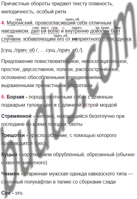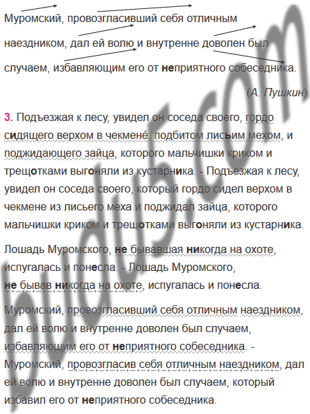 В одно ясное холодное утро (из тех, какими б..гата наша русская осень) Иван Петрович Бе́рестов выехал прогуля(тся, ться) верхом на всякий случай взяв с собой пары три борзы́х, стремянного и (не)скольких дв..ровых мальчишек с трещ..тками. В то же самое время Григорий Иванович Муромский соблазнясь хорошею погодою велел ос..длать куцую свою кобылку и рысью поехал около своих англизированных владений. Подъезжая к лесу увидел он соседа своего гордо с..дящего верхом в чекмене́ подбитом лис..им мехом, и поджидающего зайца, которого мальчишки криком и трещ..тками выг..няли из кустарн..ка. Если(б) Григорий Иванович мог предвидеть эту встречу то конечно(б) он поворотил в сторону; но он наехал на Берестова (во)все (не)ожида(н, нн)о и вдруг очутился от него на ра..тоянии п..столетного выстрела. Делать было (не)чего: Муромский как образова(н, нн)ый европеец под..ехал к своему противнику и учтиво его приветствовал. Берестов отвечал с таким(же) усерд..ем, с каковым цепной медведь кланяется господам по приказанию своего в..жатого. В сие время заяц выск..чил из лесу и побежал полем. Берестов и стремянный закр..чали во всё горло пустили собак и следом поск..кали во весь опор. Лошадь Муромского (не)бывавшая (ни)когда на охоте испугалась и пон..сла. Муромский провозгласивший себя отличным наездником дал ей волю и внутренне доволен был случаем избавляющим его от (не)приятного собеседника.