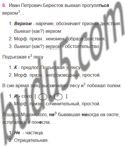 6. Проведите морфологический разбор одного наречия, одного предлога, одного союза и одной частицы (на выбор).