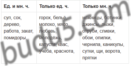 Ед. и мн. ч. Только ед. ч.  Только мн. ч.