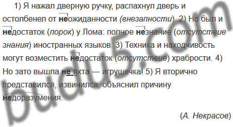 1) Я нажал дверную ручку, распахнул дверь и остолбенел от (не)ожиданности. 2) Но был и (не)достаток у Лома: полное (не)знание иностранных языков. 3) Техника и находчивость могут возместить (не)достаток храбрости. 4) Но зато вышла (не)яхта — игрушечка! 5) Я вторично представился, извинился, объяснил причину (не)доразумения.