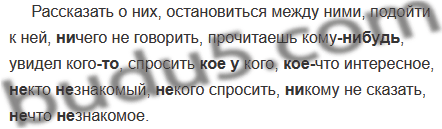 Рассказать о (они), остановиться между (они), подойти к (она), (н..)чего не говорить, прочитаешь кому(нибудь), увидел кого(то), спросить (кое)(у)кого, (кое)что интересное, (н..)кто (не)знакомый, (н..)кого спросить, (н..)кому не сказать, (н..)что (не)знакомое.