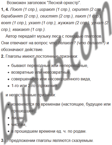 1. Найдите и выпишите слова, с помощью которых автор передаёт музыку леса. К какой части речи они относятся? На какой вопрос отвечают? Какое грамматическое значение выражают?