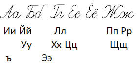 ъ, ы, ь Ээ, Юю, Яя.