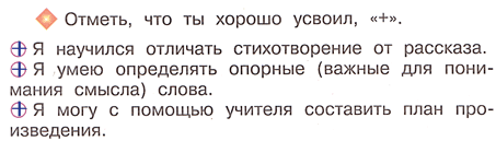 ♦ Отмечаем "+" то, что хорошо усвоили.