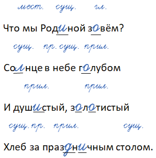 Что мы (мест.) Родиной (сущ.) зовём (глаг.)?