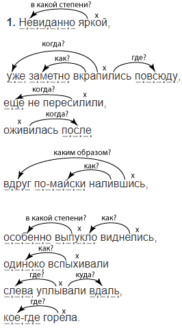1. Выпишите из текста наречия вместе со словами, к которым они относятся. Поставьте к наречиям вопросы и подчеркните как члены предложения.