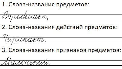 Составим предложения с данными словами. Маленький воробышек радостно чирикает, купаясь в лучах солнца. Созрела душистая черёмуха и наполнила ароматом всё вокруг. Звонкие ручьи бегут по дорожкам.