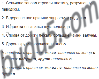 1. Сельчане занов.. строили плотину, разрушенную паводком. 2. В деревне нас приняли запрост.. и радушн.. . 3. Издалек.. слышался шум водопада. 4. Справ.. от дороги лежали большие камни-валуны. 5. Дорога крут.. сворачивала влев.. .