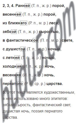 4. Обозначьте падеж прилагательных и выделите их окончания.