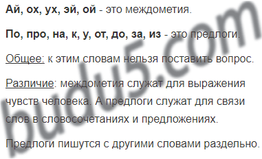 Ай, по, про, ох, на, ух, к, у, эй, от, до, за, ой, из.